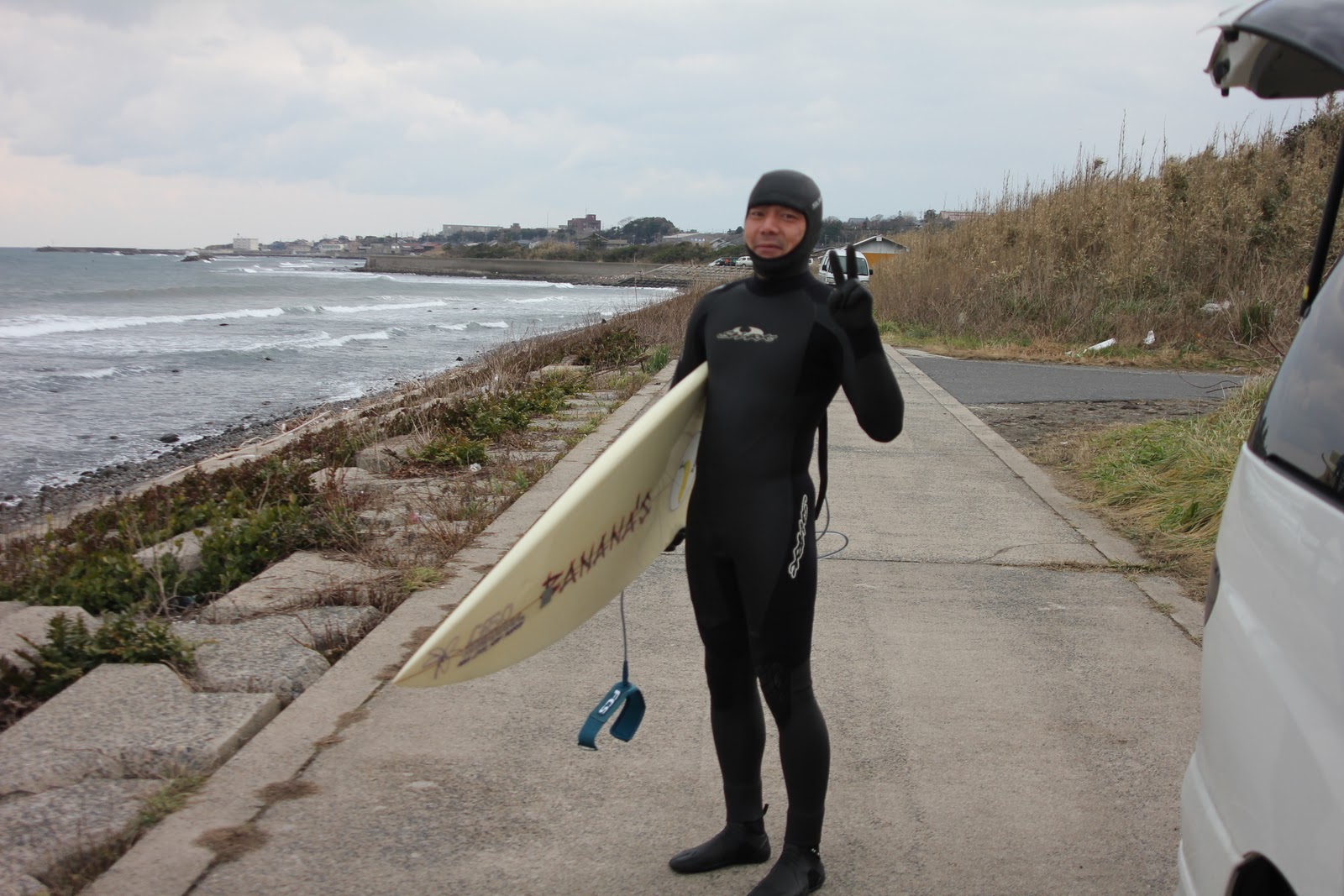 日本海側は大荒れ、雪の予報だったのでサーフィンは断念><