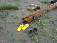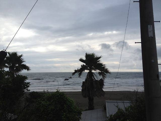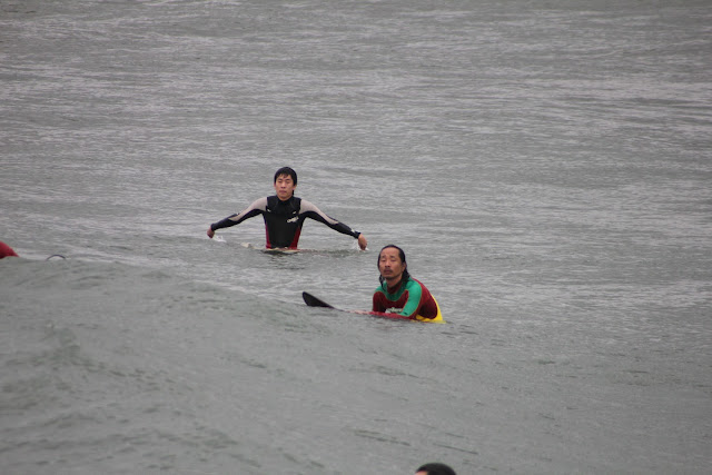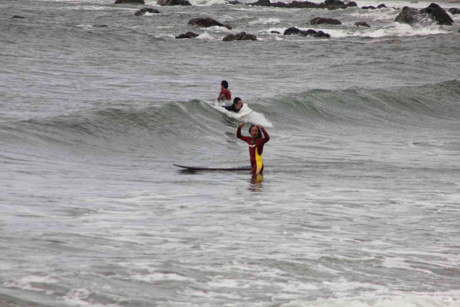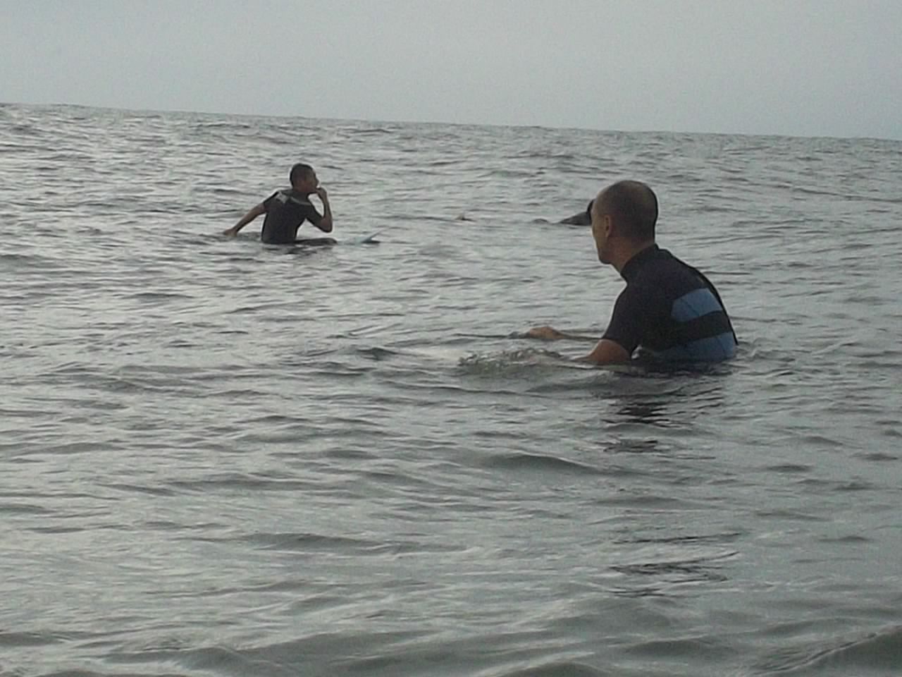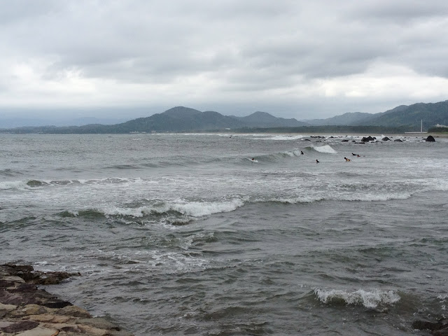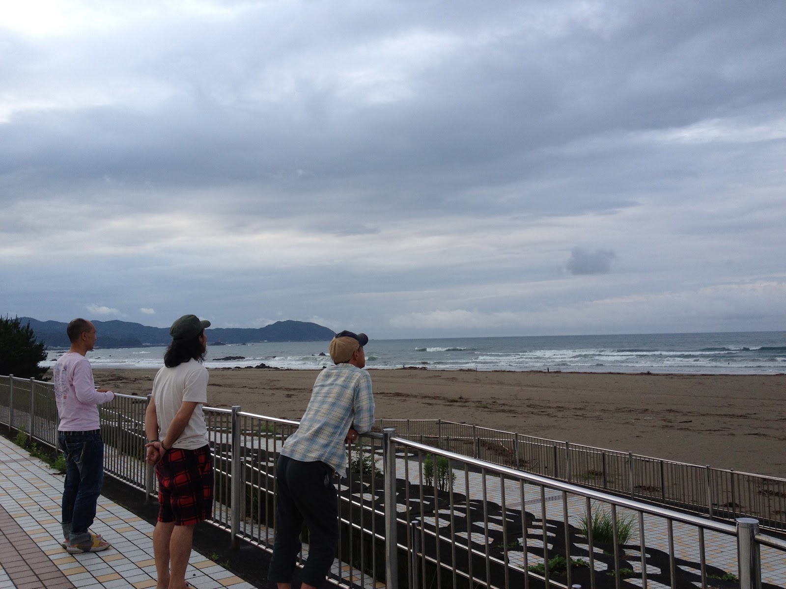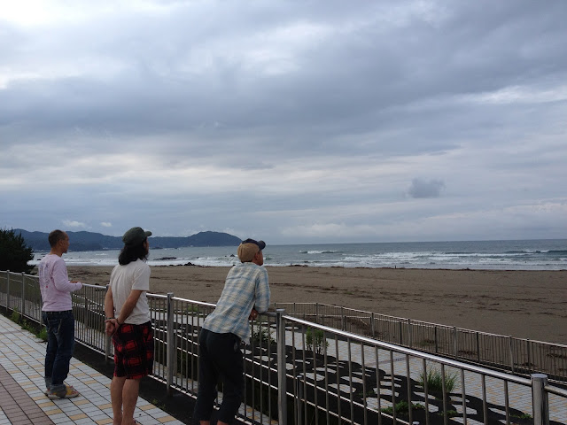 この人は波見て人に聞いて、ちょっとそれた場所から