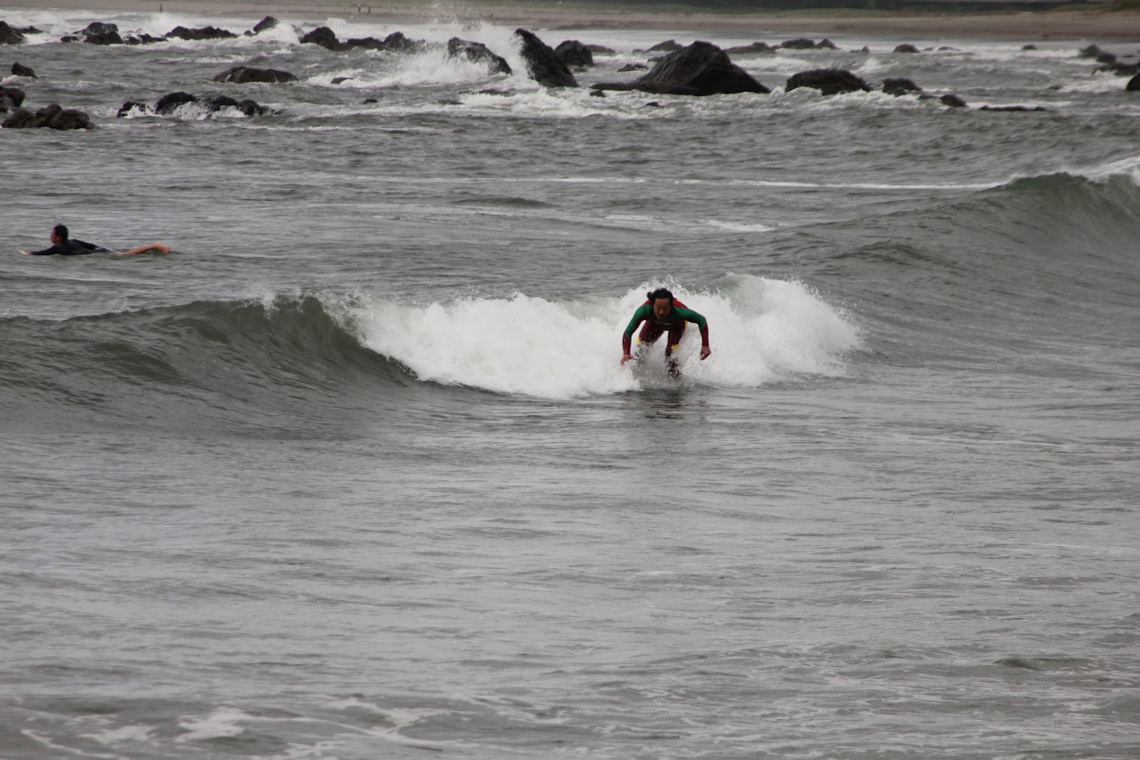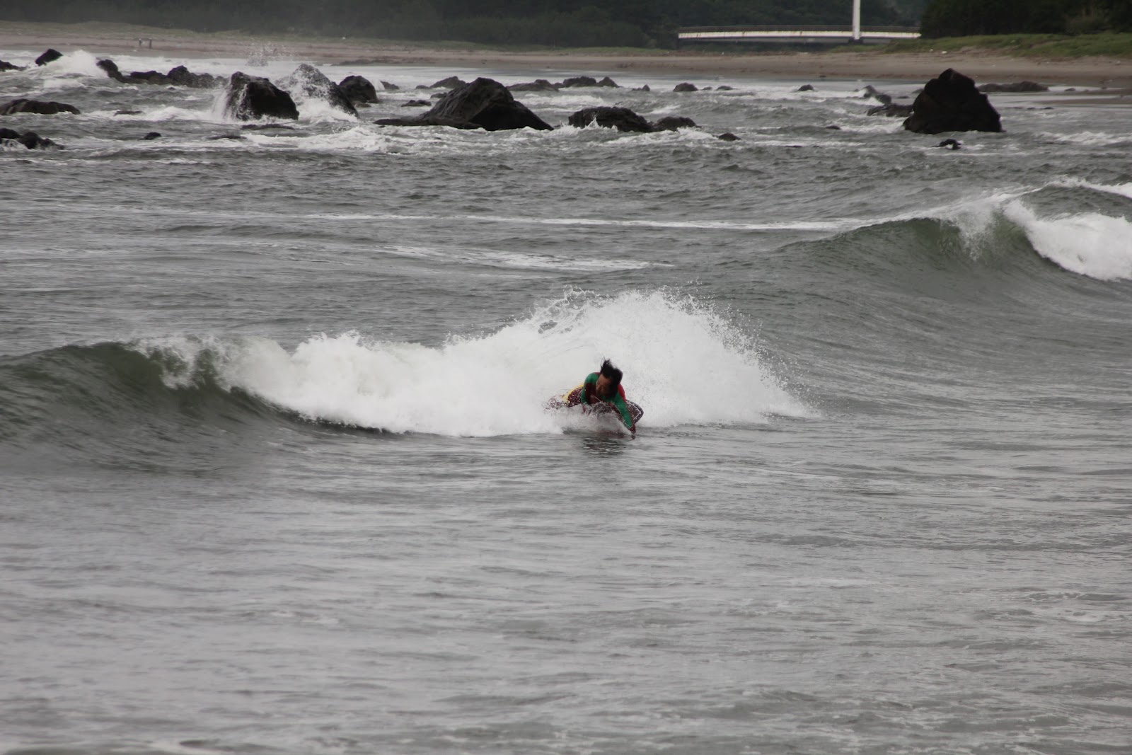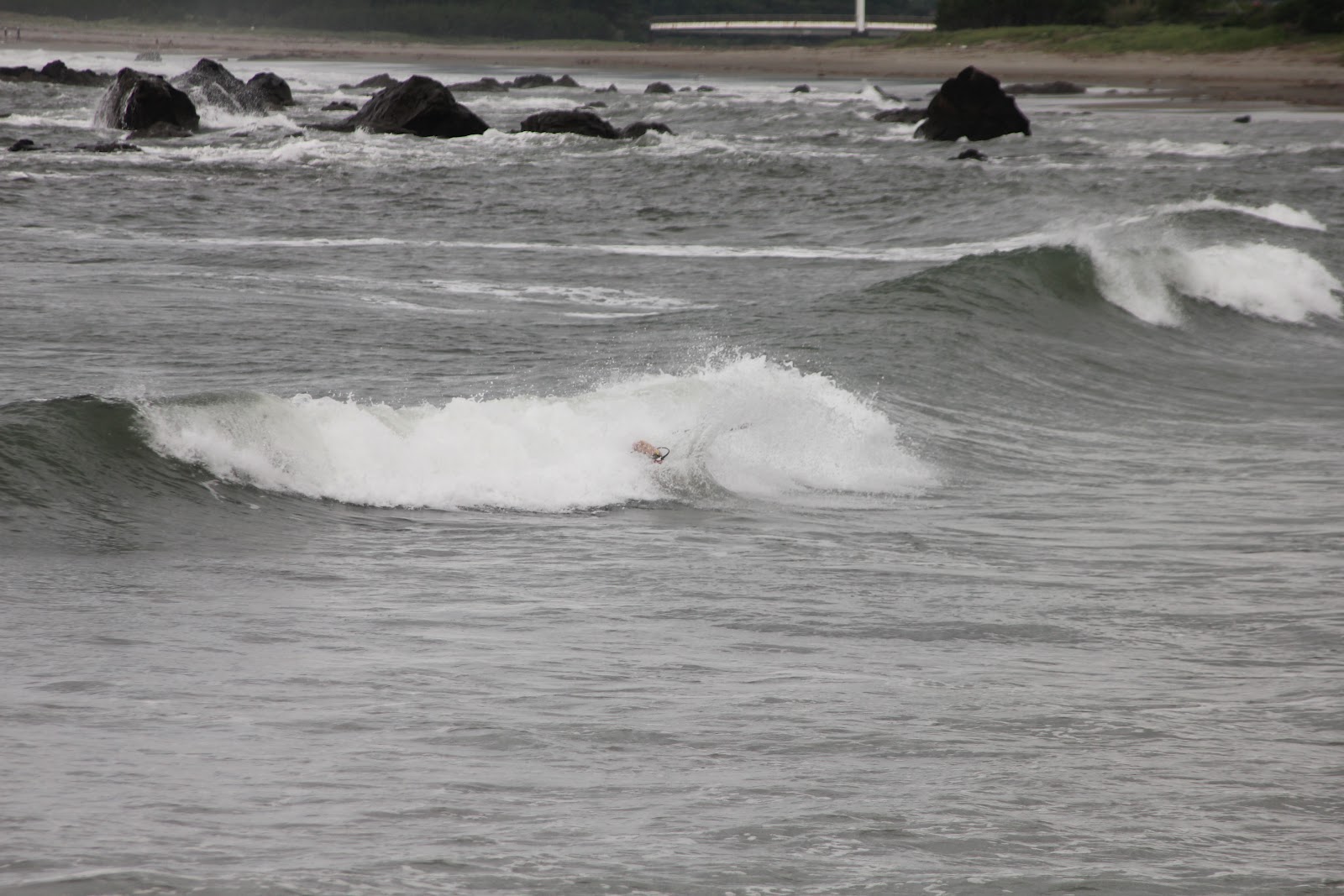 コシ〜ムネとサイズこそないが、予報通り風の影響を受けて波数多くハードコンディション(><;