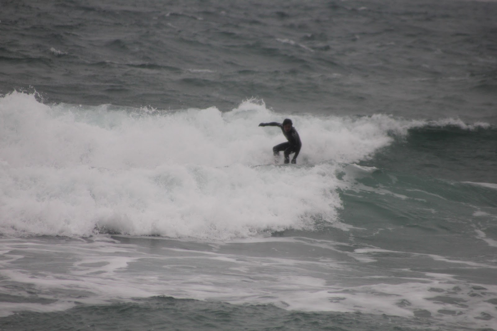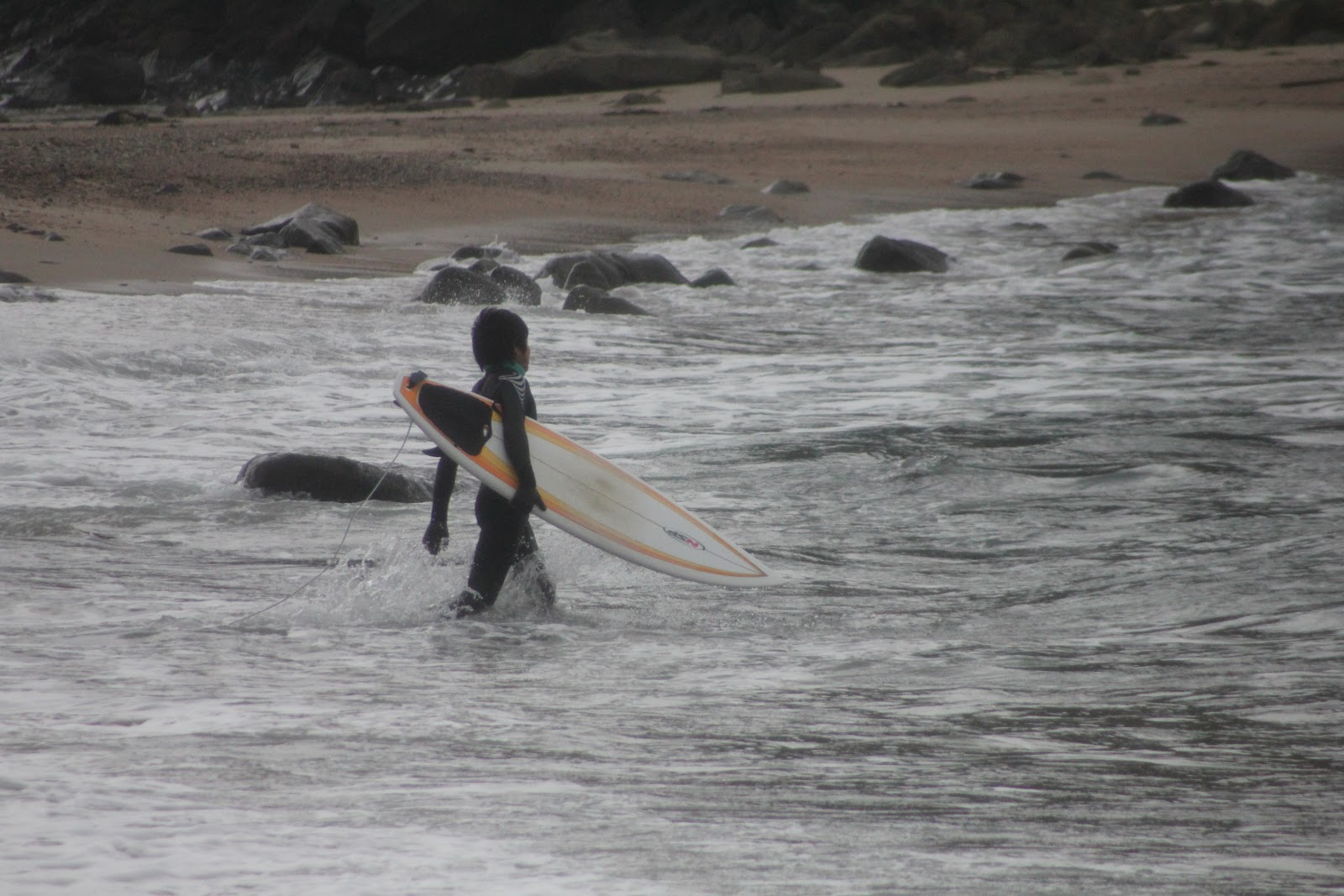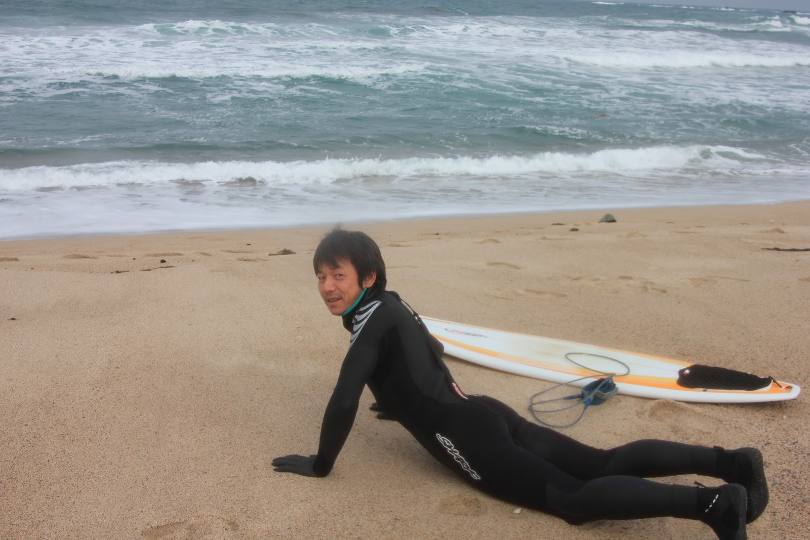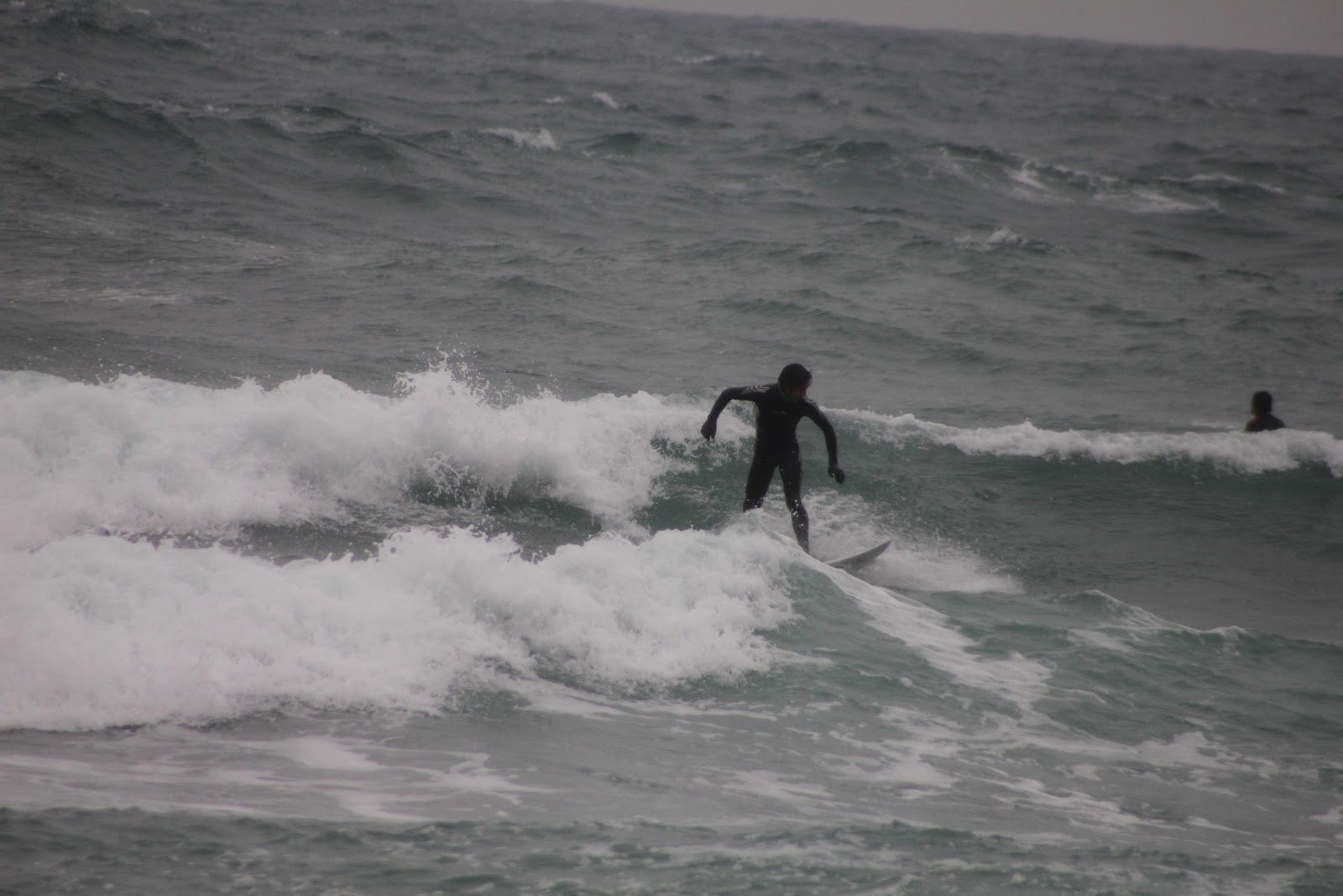 人は少なめ、多い時で10人位?風食らってまとまりない波でしたが数本いいの乗れたので、早目に退散しました。^^;